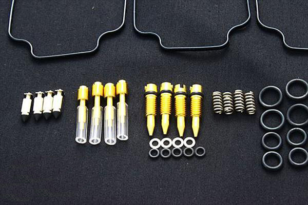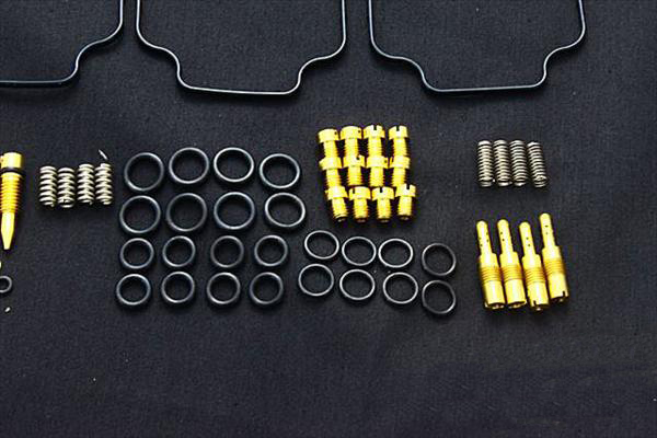 ●キャブレターの必需品!!メンテナンスやレストアには欠かせない商品です。!!●セット内容はパッキンセット、フロートバルブ、メインジェット、スロージェット、エアースクリュウになります。 ●適合車種はCBR400F、CBR400F2、CBR400F3に対応しております。●1型、2型、3型に対応できるようにメインジェットは98番100番102番の3種類が入っております。※フロート〈浮き〉及びジェットニードル、ニードルジェット〈針と筒〉はこのキットには含まれておりません。